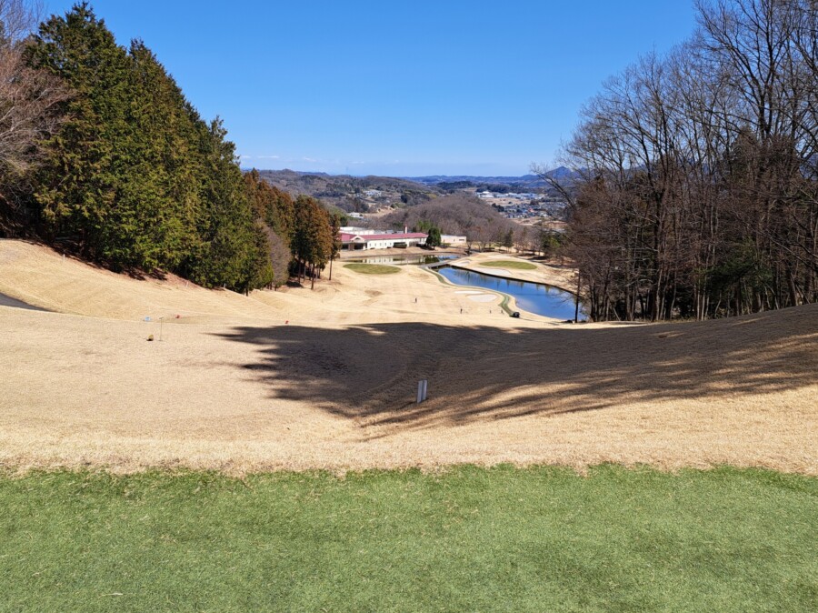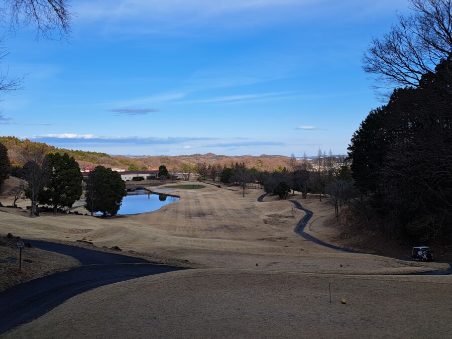 気持ちよい打ち下ろしでクラブハウスに向かう9番ミドルホール。