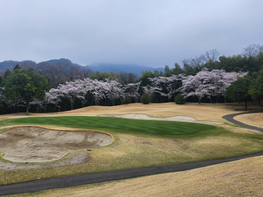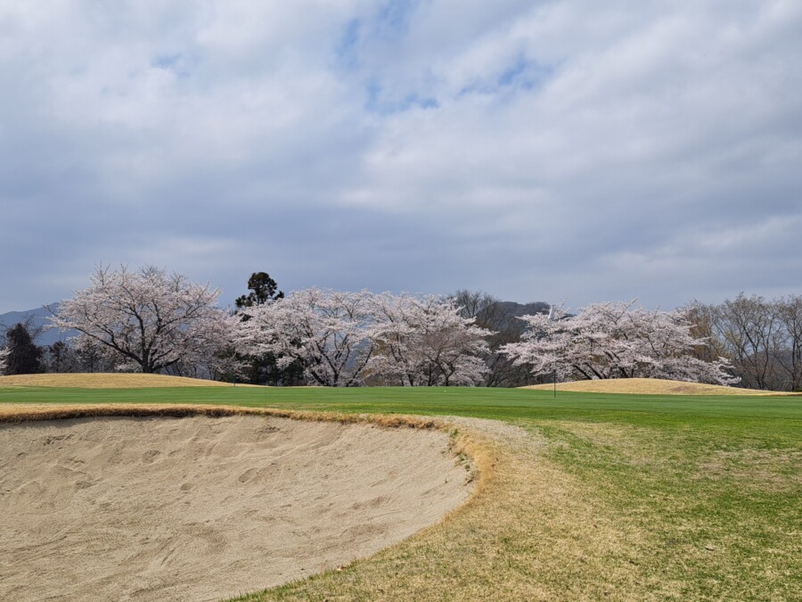 15番のミドルは満開の桜に向かってティーショット。↓