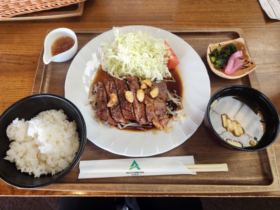 前半はちょっとショットの当たりが良くなくてバタバタ・・元気を付けるためにお昼はトンテキをいただきました!